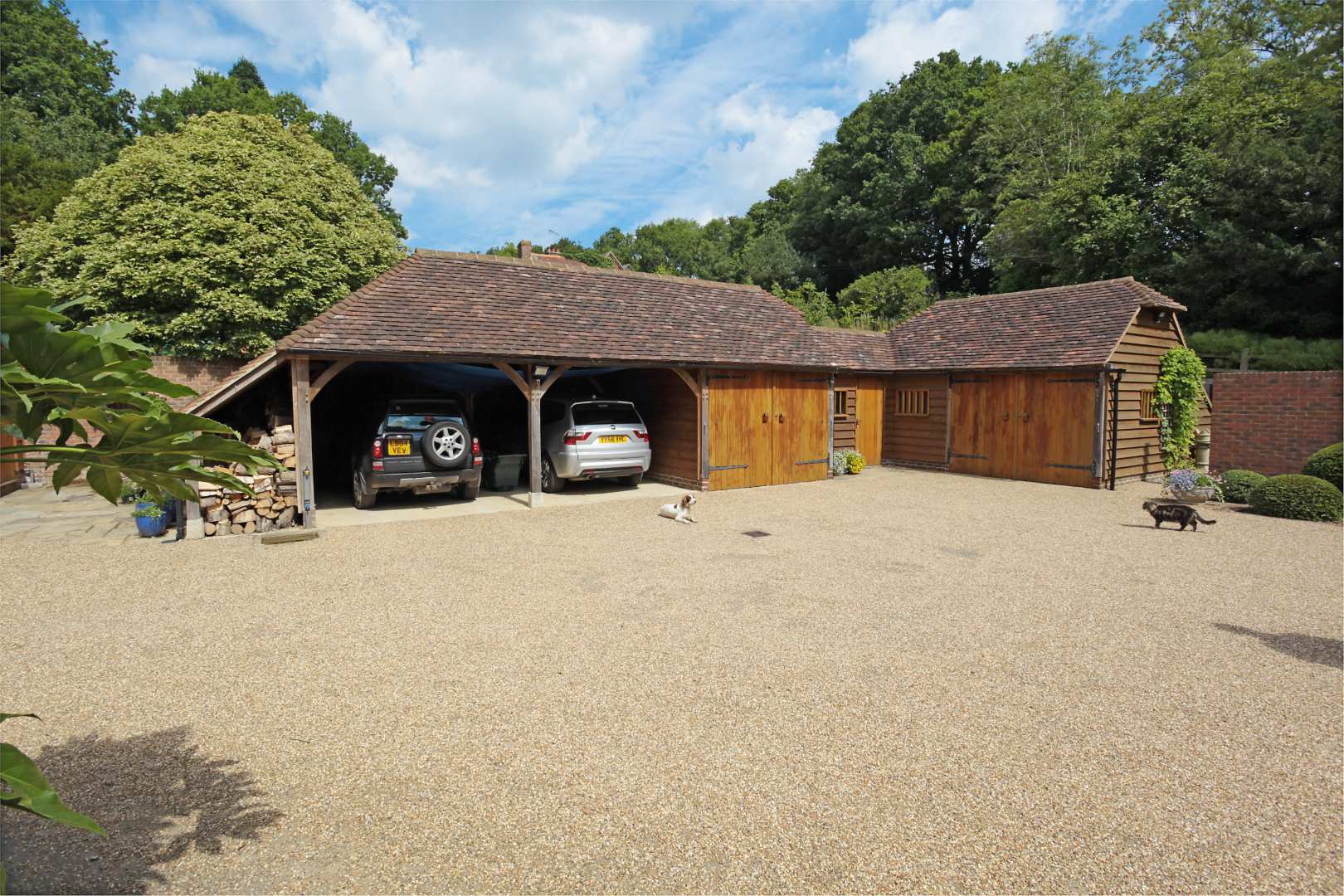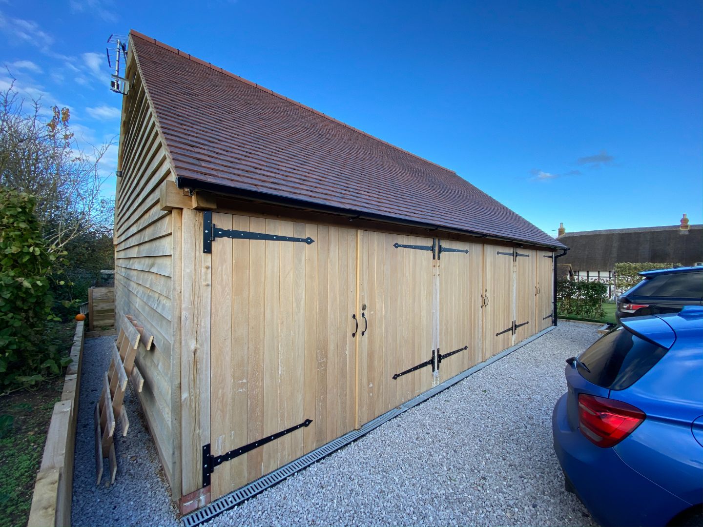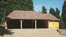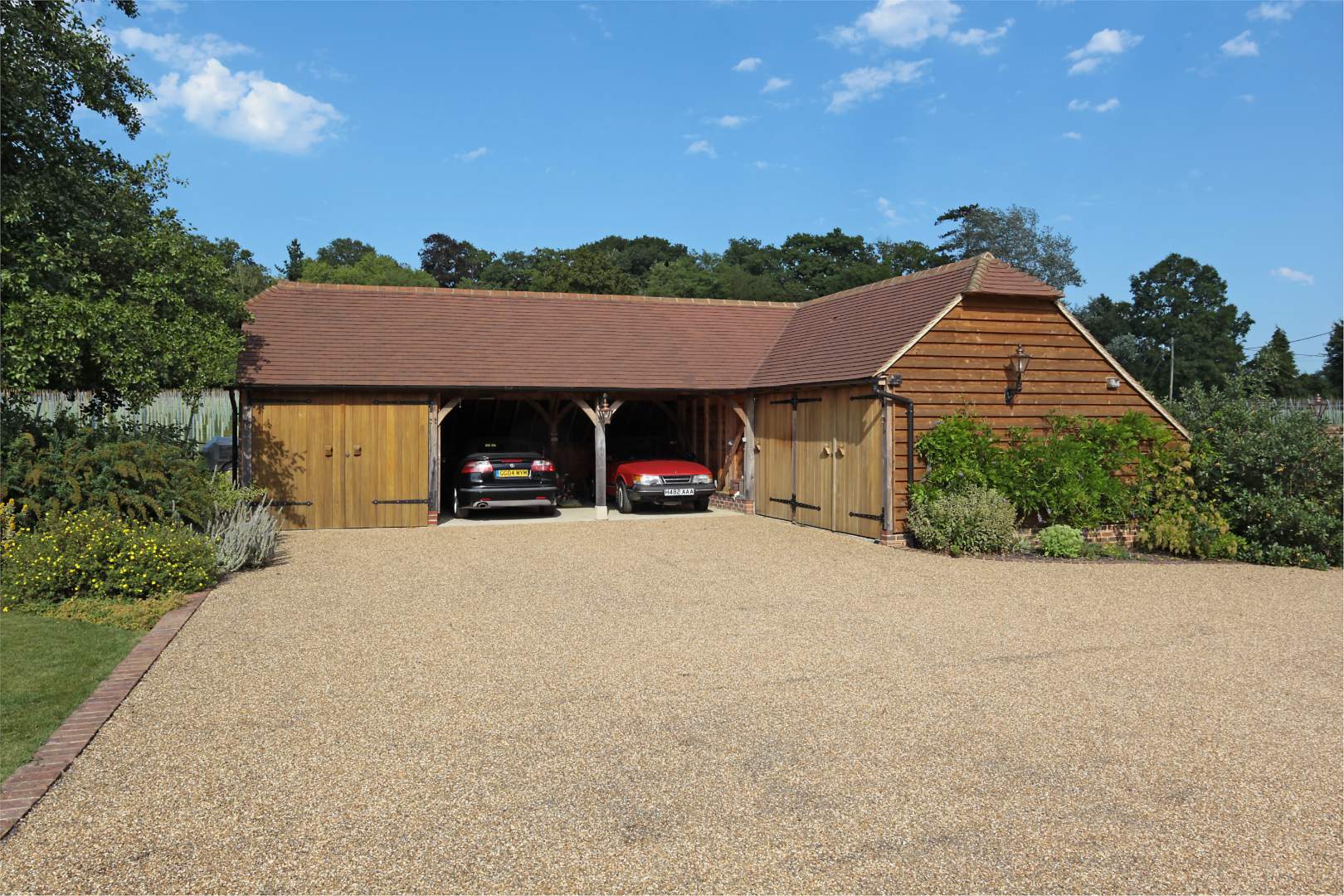 Our grand four bay oak frame garages are created using modern construction techniques and traditional green oak. Whether you need more space for storage or simply have an extra large car collection, we can help.