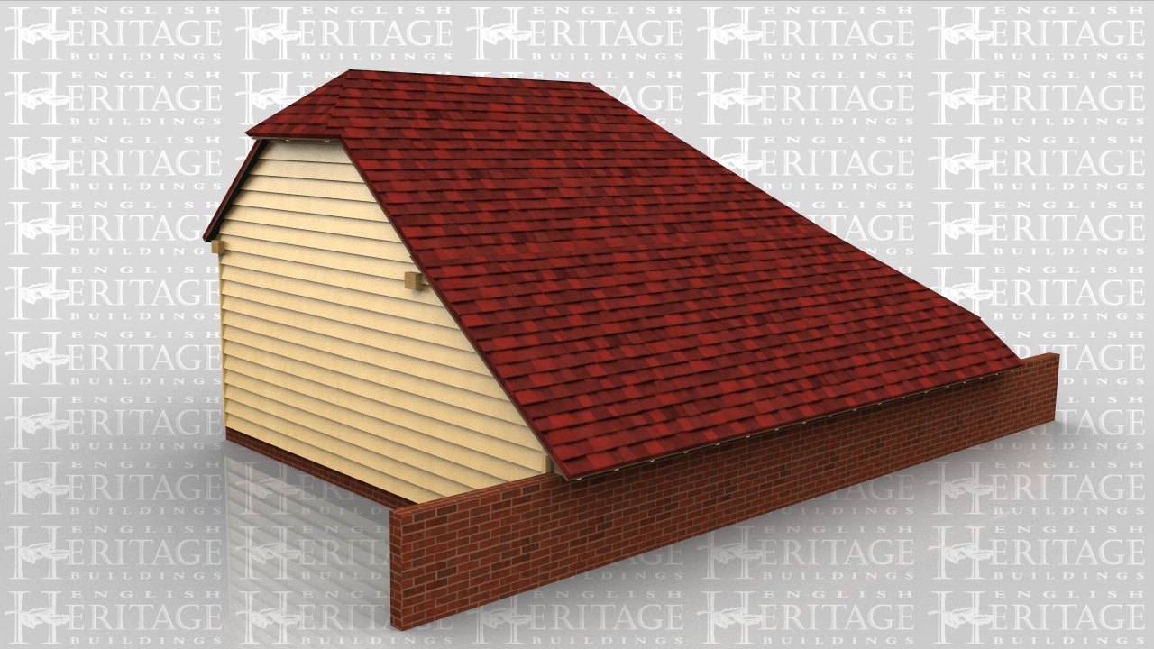 2 bay garage with catslide roofs to 2 sides the rear roof sitting on top of a brick retaining wall.