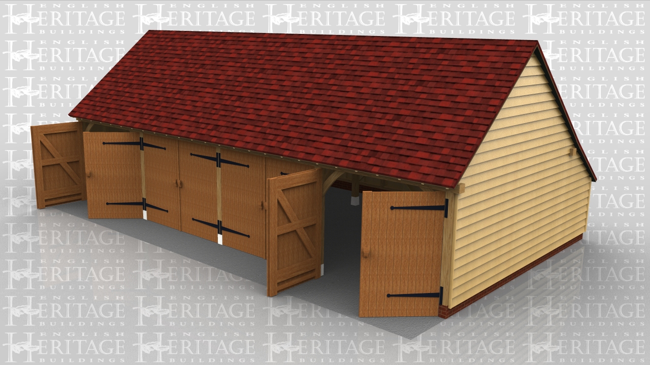 Four bay garage with rear catslide. All 4 bays have garage doors to keep the inside secure.