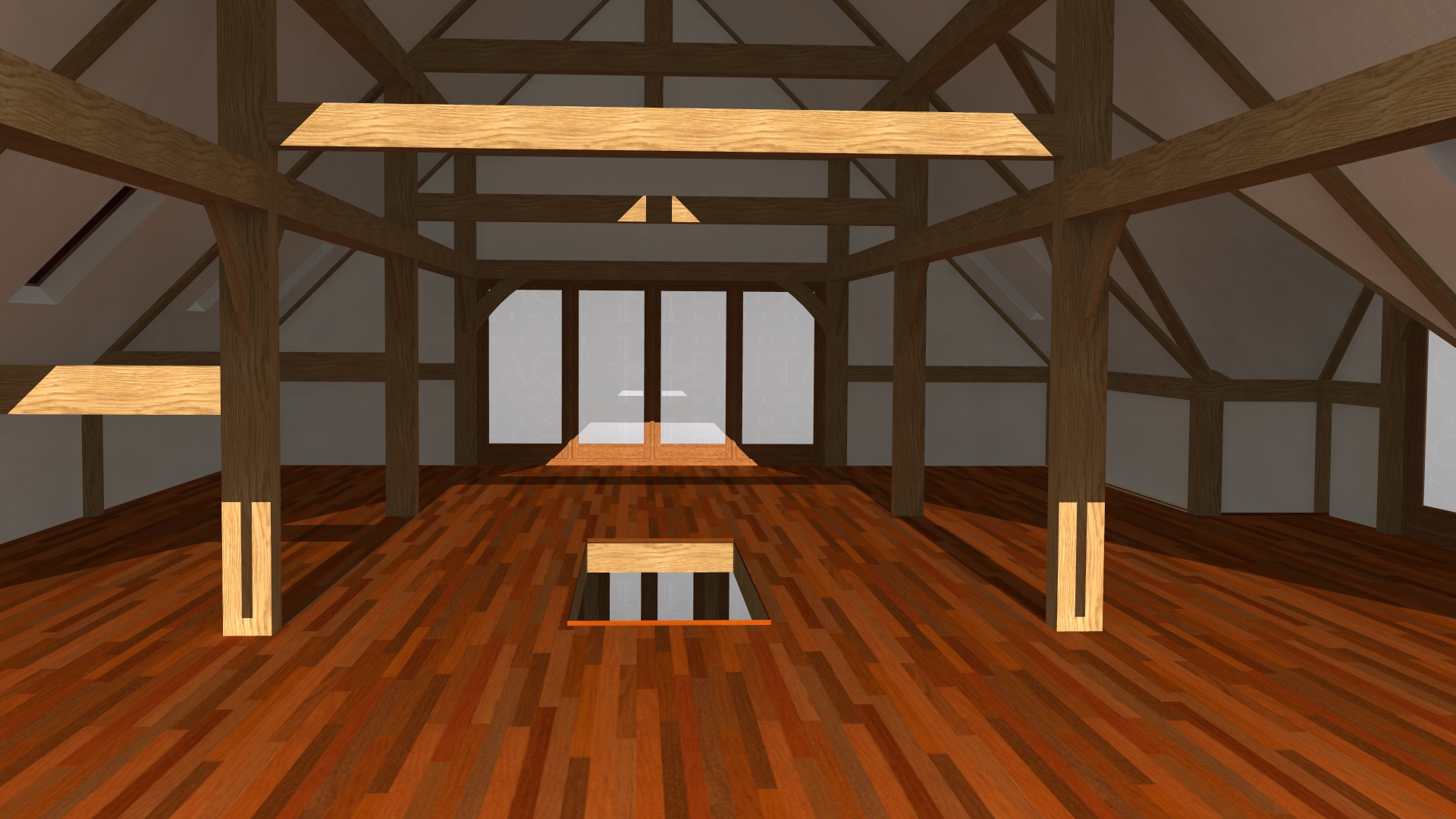 An 3 bay sling brace style oak framed two storey house designed for a customer in Kent. With much of the ground floor having full height glazing, this makes for a light and airy feel to the building and lends itself well to an open plan design for the downstairs area. The 45 degree pitch combined with the sling brace design not only gives great use of the upper floor area but also provides a stunning vaulted roof creating a sense of open space. Additional natural light is given from the rooflights in the upper floor.