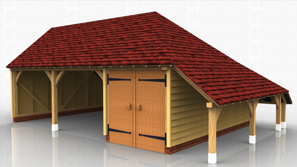 Two open garage bays with a secure store / workshop on the right hand side. A logstore is also attached to the store.
