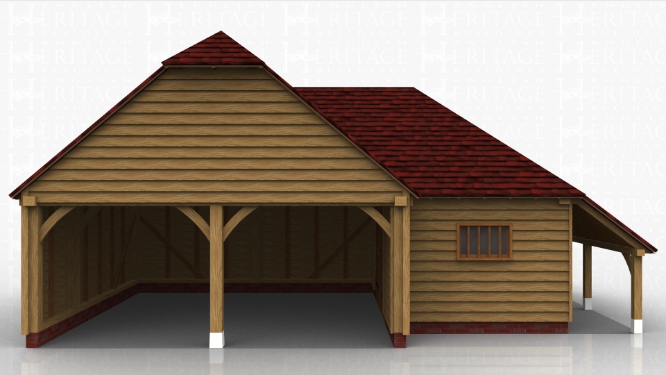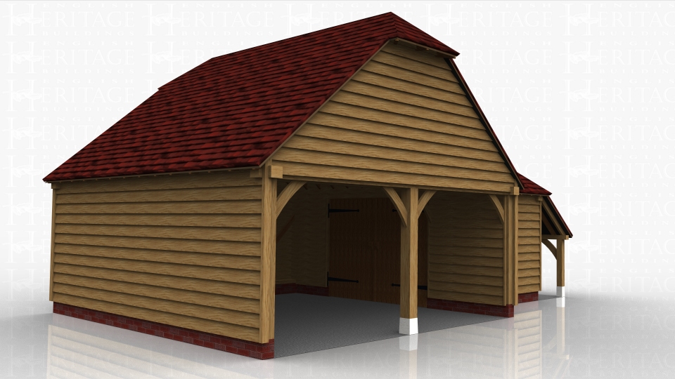 2 bay oak garage with separate store accessed from inside garage. Logstore on right hand side.
