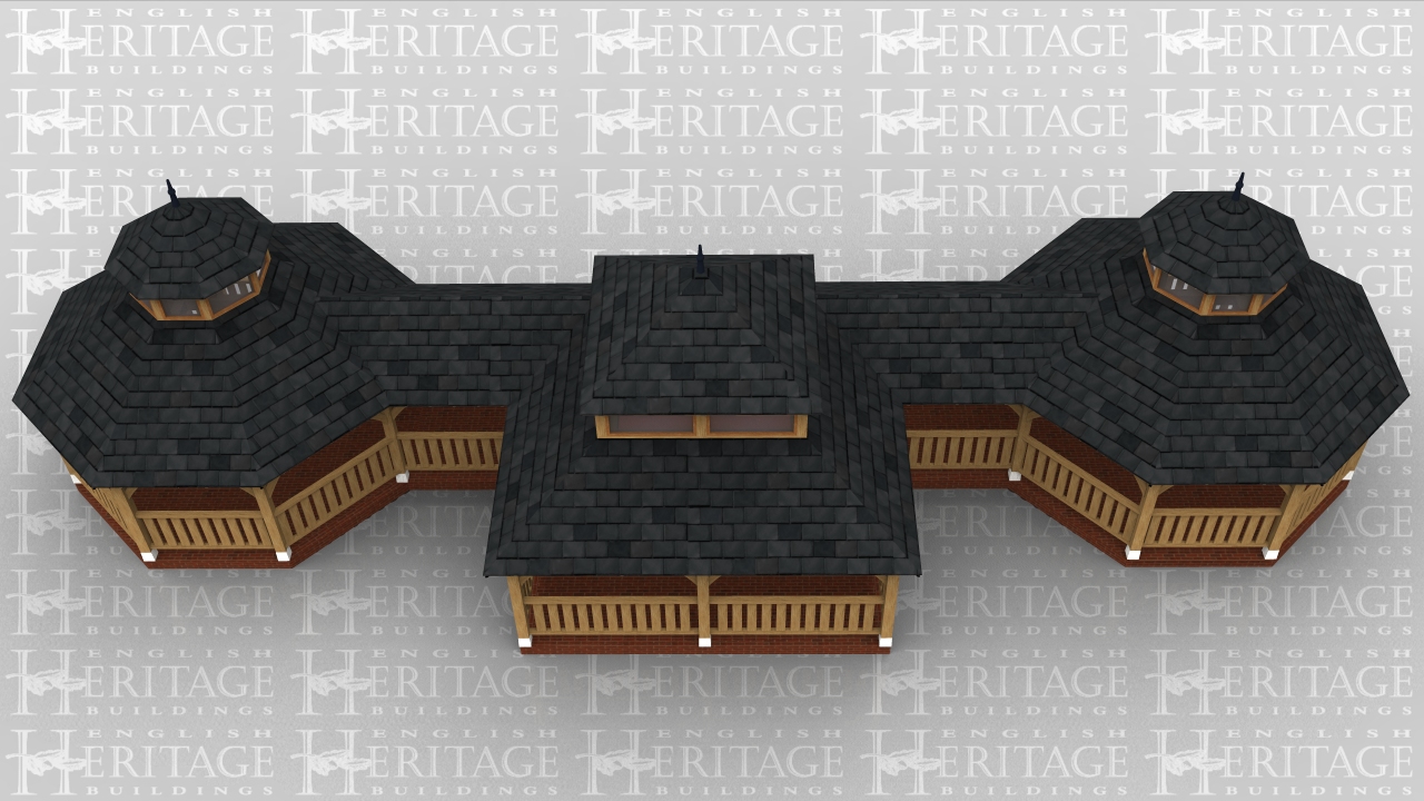 An oak frame based on a Japanese pagoda type design to replace an existing one that was falling down.