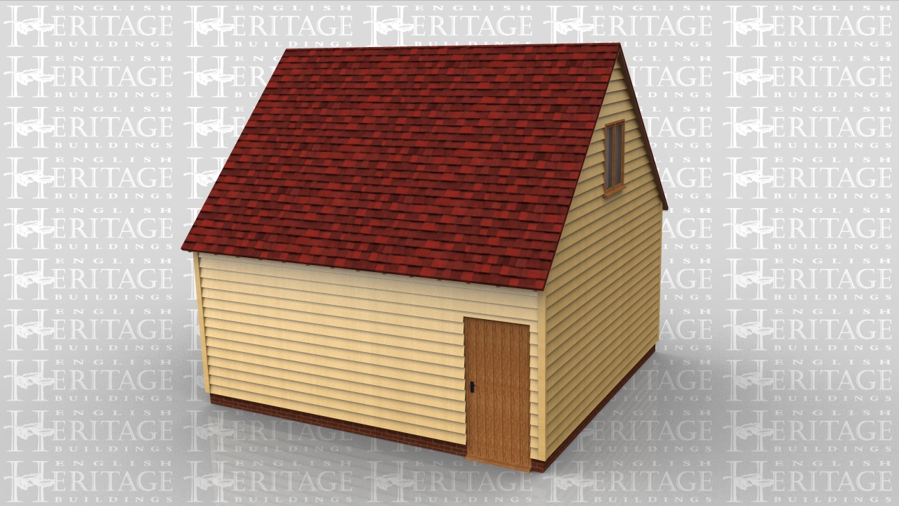 This building is a two bay raised plate with the ground floor enclosed with 2 pairs of garage doors. There is also a single door to the rear of the building. On the first floor there is a large two light casement window in each gable end. Access to the first floor would be by an internal staircase.