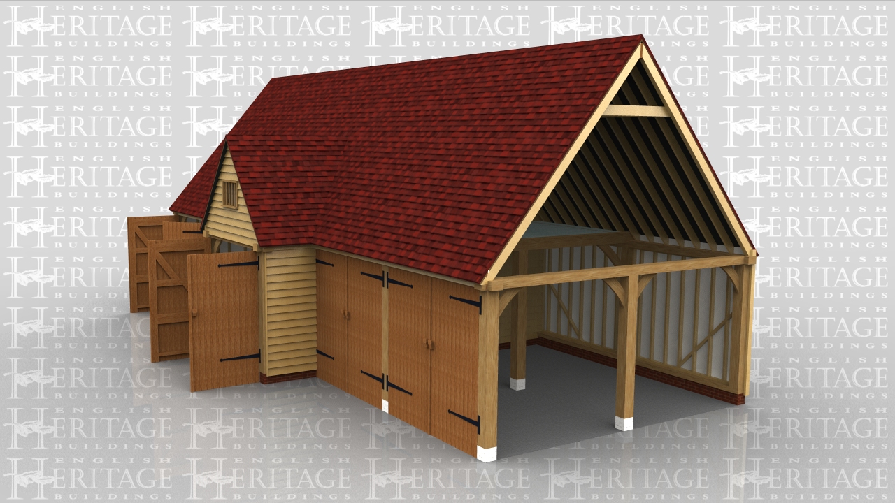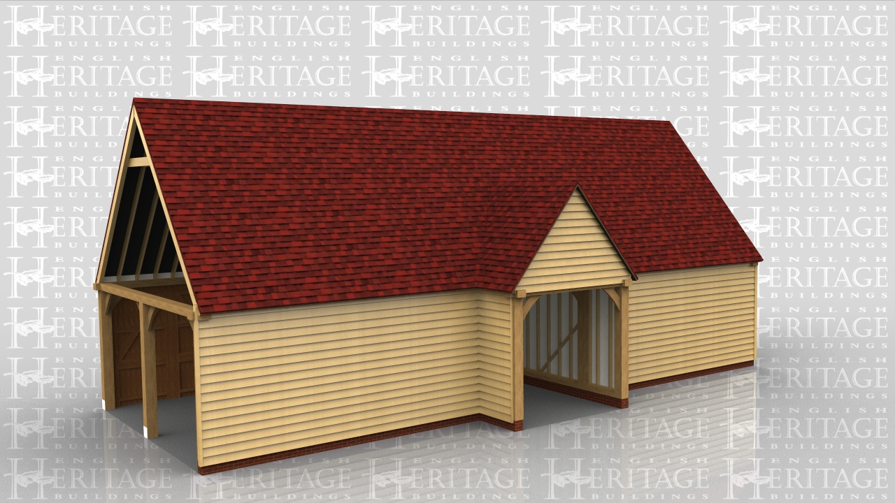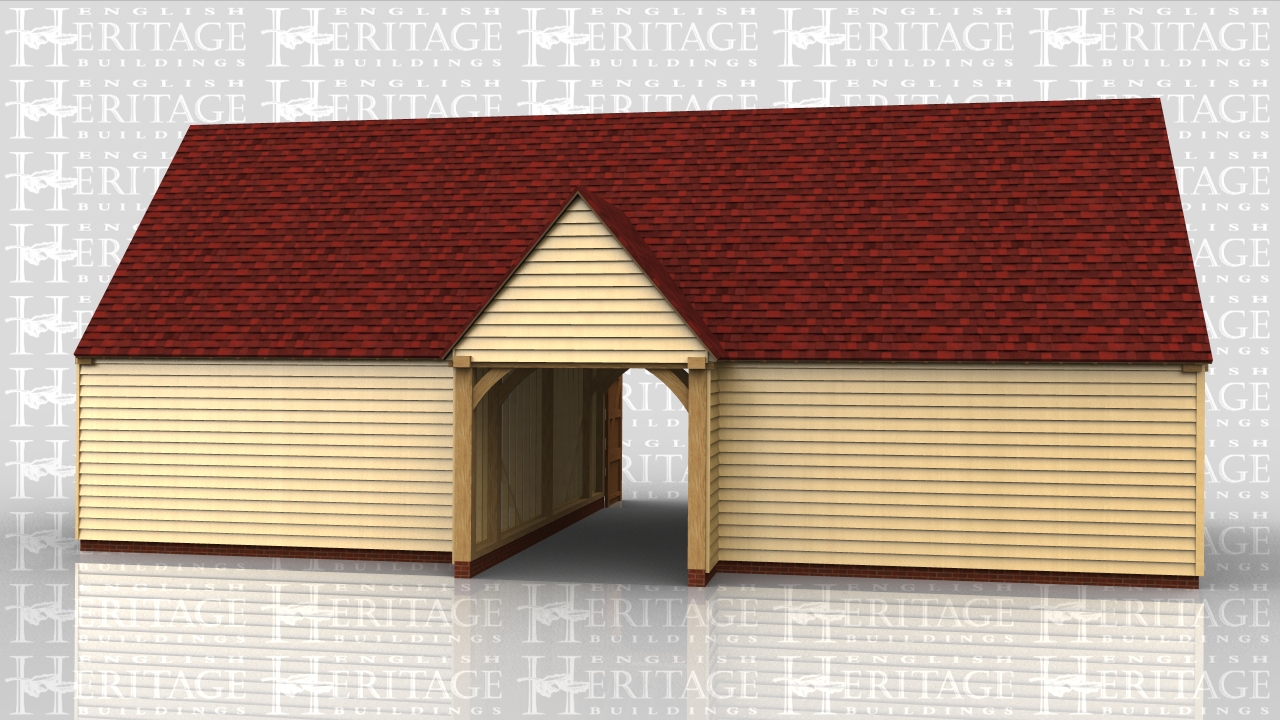 This 5 bay garage block is attached to an existing building one end and from the front looks like five garage bays all with garage doors. In fact the centre bay has a projecting barn entance on both the front and the rear and is in fact a drive through.