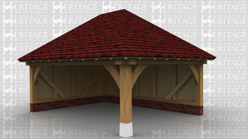 An open oak framed building for a car or covered storage. It could also be used to site a hot tub or for sheltered outdoor entertainment.