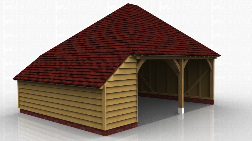 This oak framed garage has two open bays and an enclosed store to the left hand side.