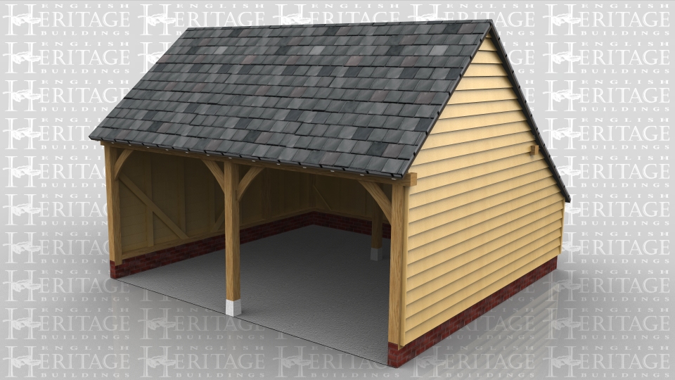 This is a two bay open fronted garage with gable ends and a rear catslide.