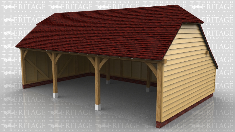 This is a 3 bay open fronted garage with barn hip ends and rear catslide.