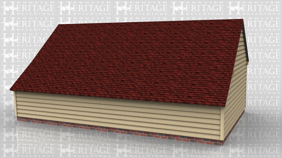 This is a three bay garage with gable ends and a rear catslide roof. Two bays are secured with 2 pairs of garage doors and a prtition which leaves the other bay open at the front.