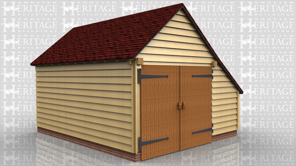 This is an enclosed one bay garage with an enclosed catslide on the right hand side. There is a pair of garage doors on the front.
