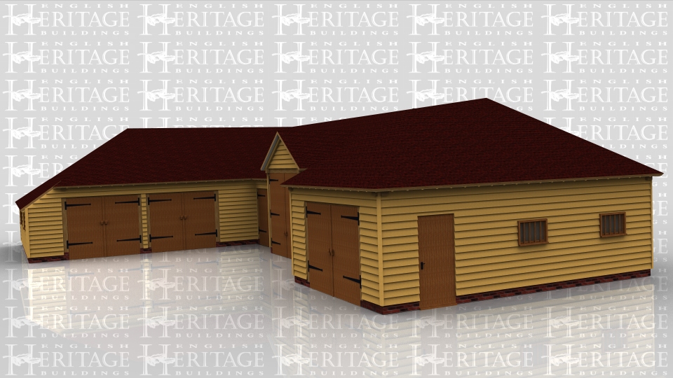 This large oak framed complex has secure car parking spaces and plenty of room for a large workshop and lots of storage. There are six pairs of traditional side hung garage doors, one of which is taller on the barn entrance in the centre. There is a solid single door in the right hand elevation and four mullion windows and 7 Velux rooflights to get natural light into the building.