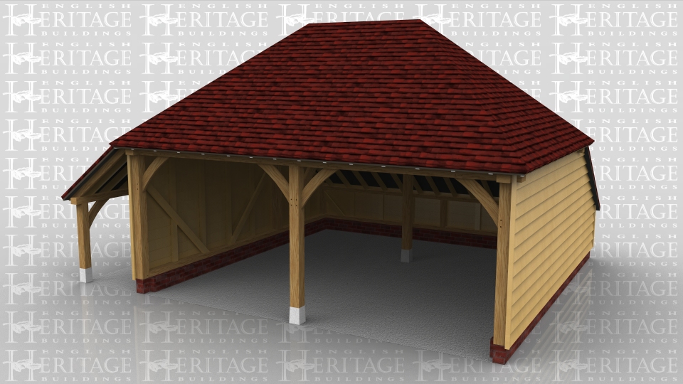 This oak framed two bay garage has two open fronted bays and a small open logstore to the left hand side.