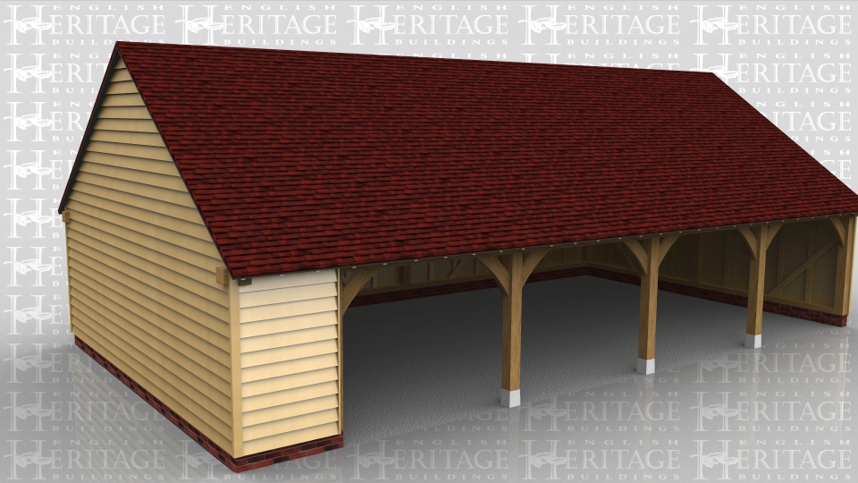 This oak framed four bay garage has an enclosed logstore to the side.
