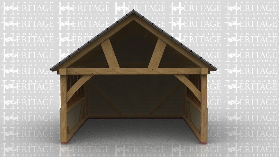 This is an oak frame designed to be attached to an existing building. It is a two bay store with partially open sides.