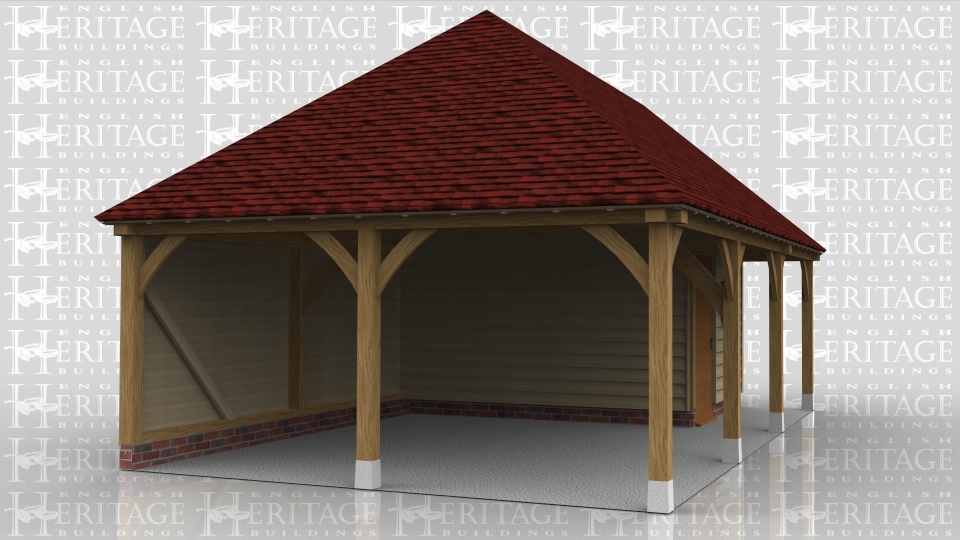 This oak framed building has two open bays and one enclosed bay with access via the single door at the front there is also a mullion window at the front of the building.