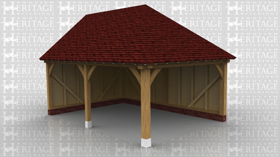 This oak framed garage is formed of two open bays, with the right side left open as well.