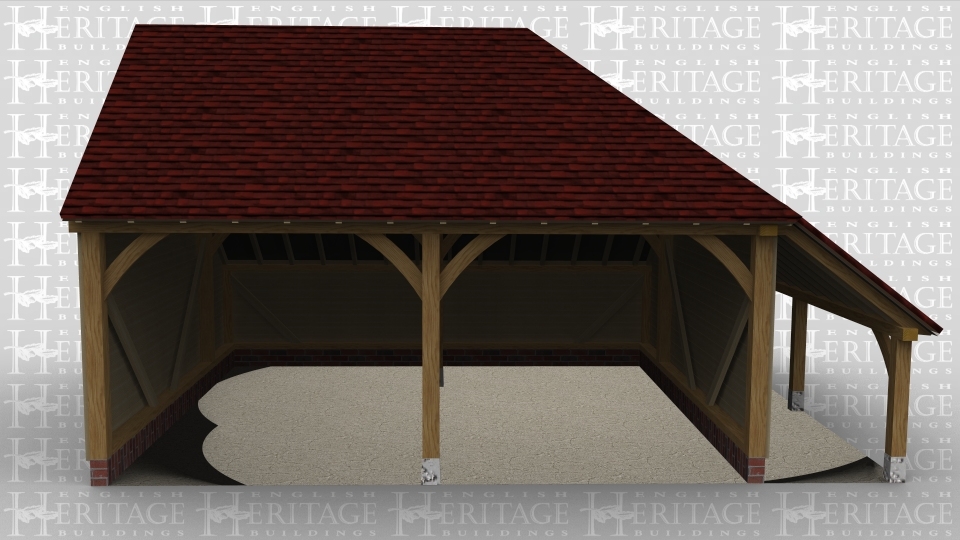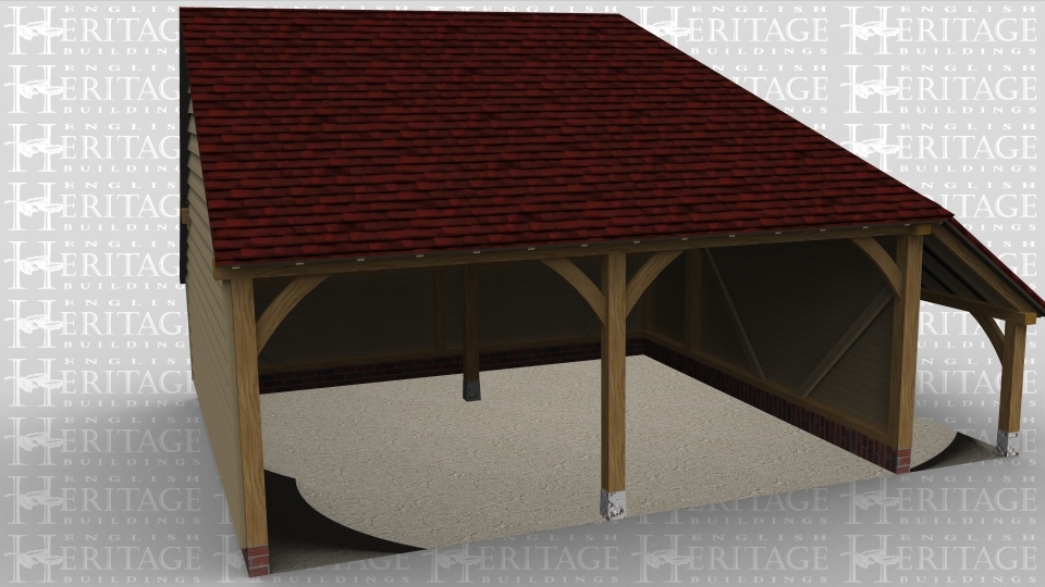 A simple oak framed garage with two bays.