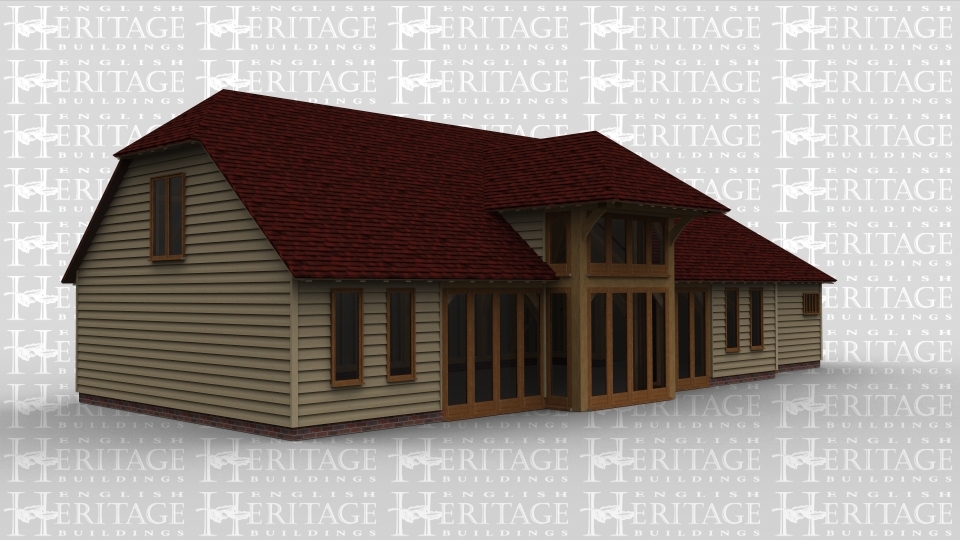An oak framed pool enclosure with full height glazing to the front of building and a midstrey above with extra glazing to allow maximum sunlight. Main building has single windows as well whilst the studio/changing room conected to the building has roof lights.