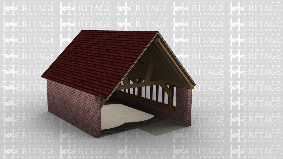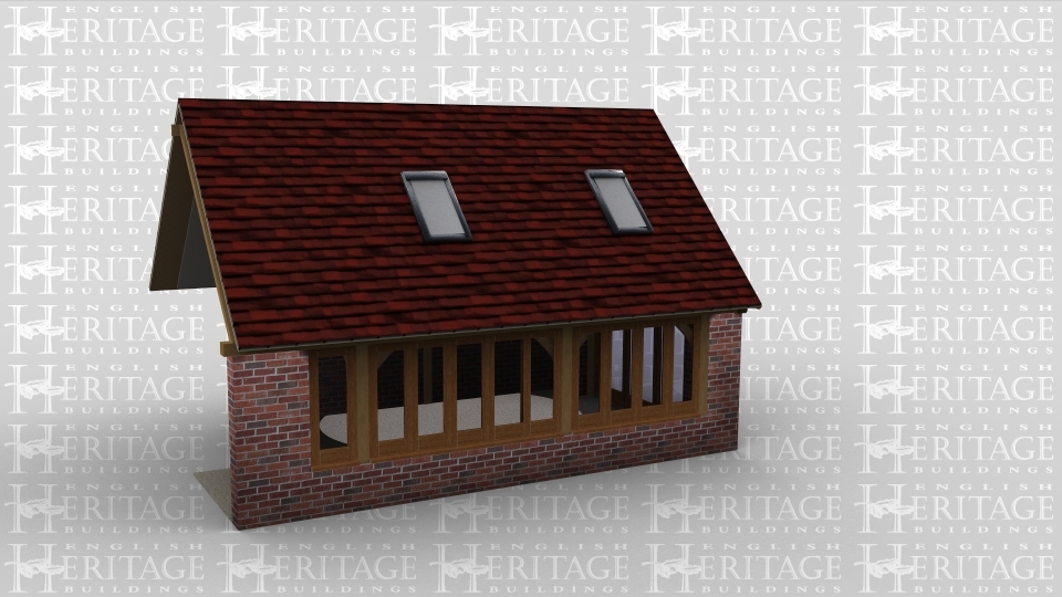 An oak framed and brick extention with one end having full height glazing. One side has running windows and roof light is available to take advantage of natural light.
