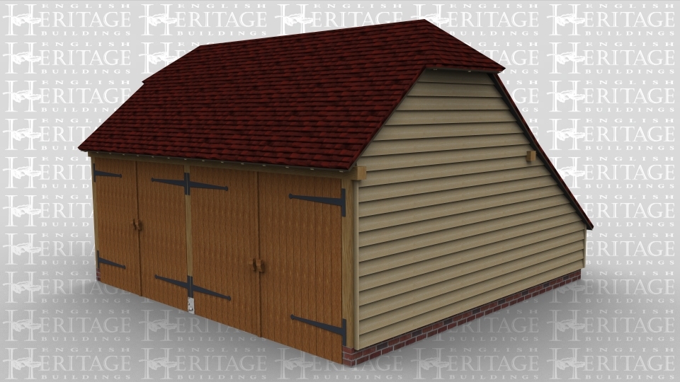 A 2 bay traditional oak frame garage with 2 sets of barn doors