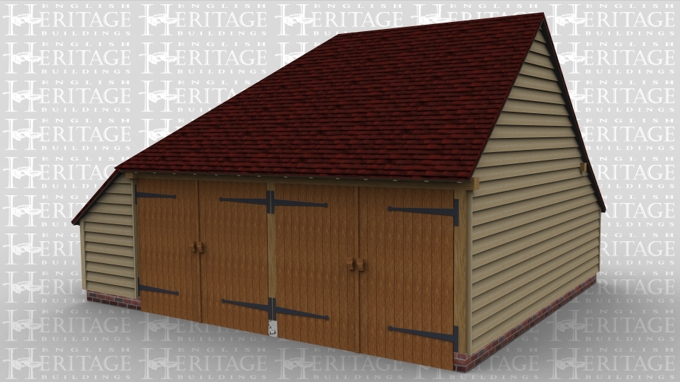 A 2 bay oak frame garage with enclosed aisle on the left side.