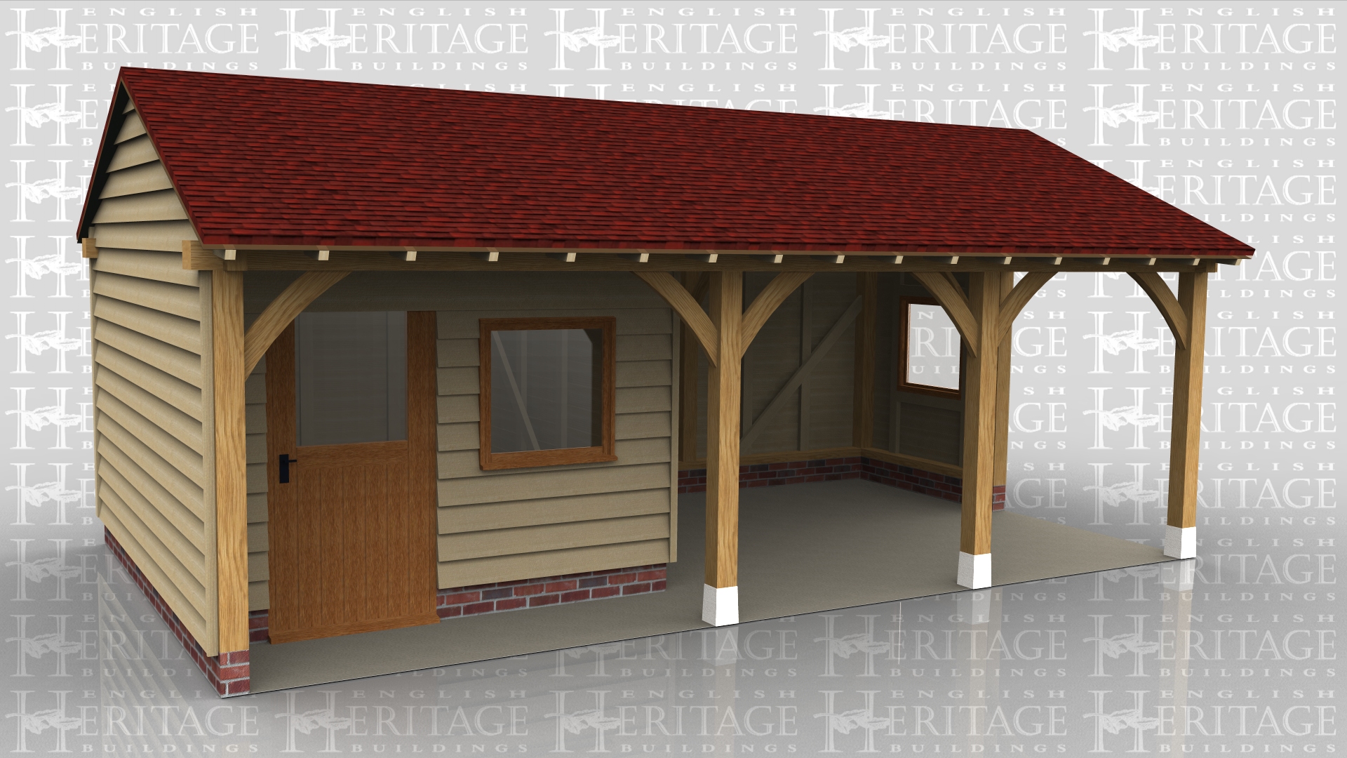 A 3 bay outdoor leisure building incorporating an open area with balustrade, suitable for hot tub or outdoor sheltered entertaining and an enclosed room for changing or storing.