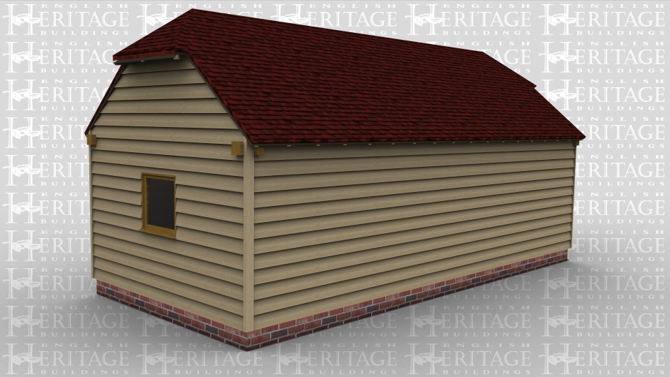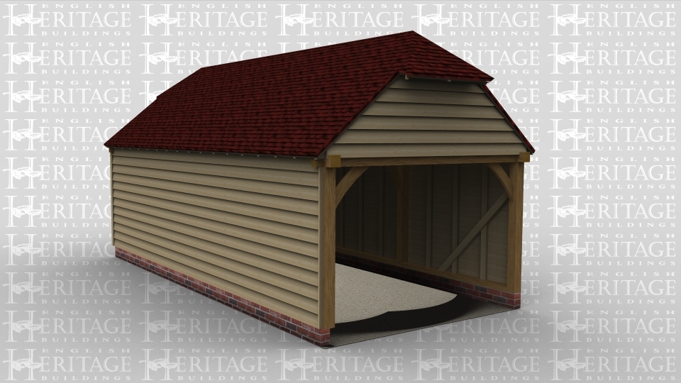 A three bay oak framed building with barn hip style roofing on both ends. This building is open on the left hand side and also has a single door on the front of the building and a window on the right to allow the natural light in