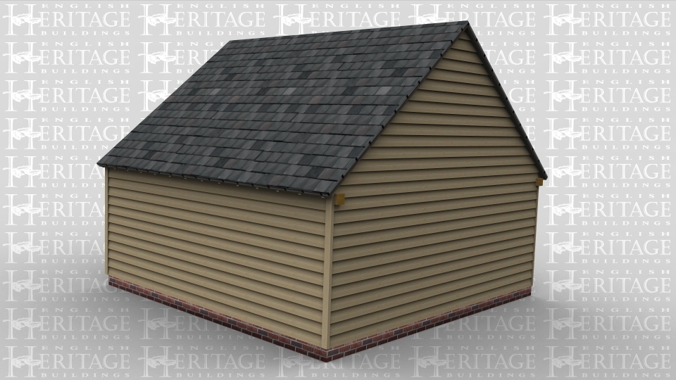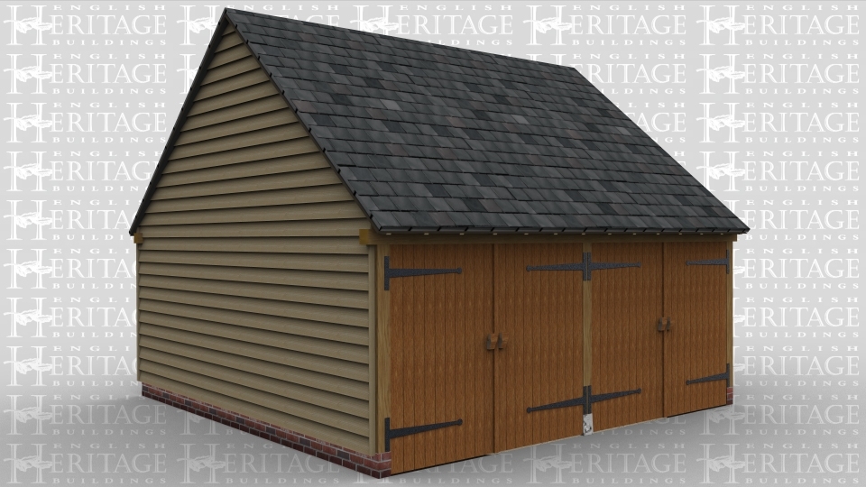 A two bay oak framed garage with a set of garage doors at the front of each bay.