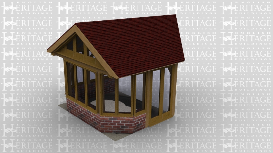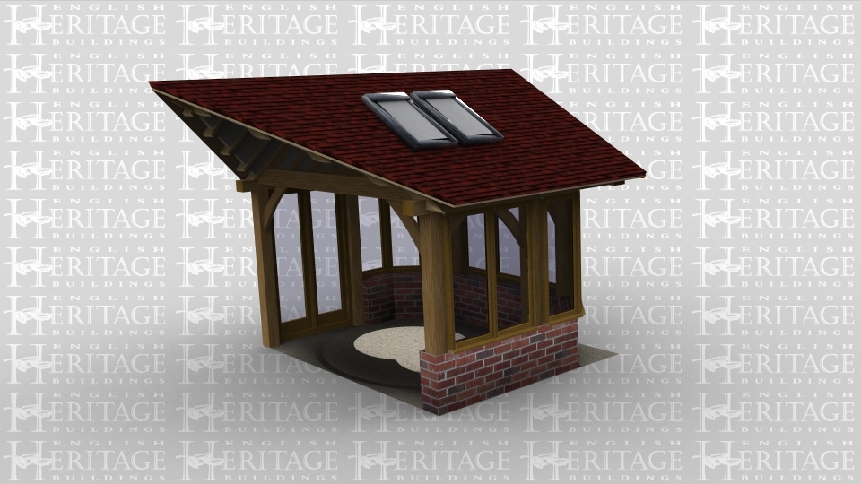 A single bay oak framed building with full height glazed doors on the front, the right hand side is left open to allow it to attach to an existing building, whilst the left side of the building has a large three pane window as does the rear to allow plenty of natural light into the building