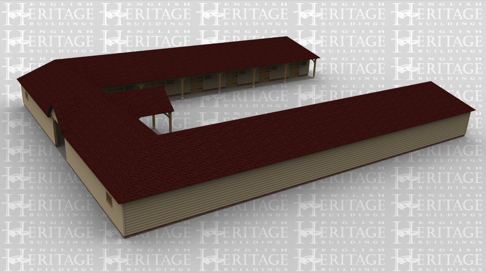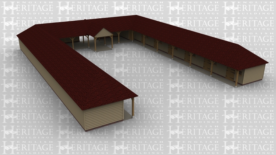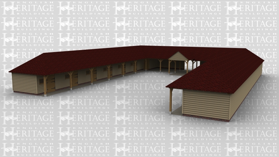 A 20 bay oak frame stable / equestrian complex in a U-shape. There are twelve stables, two foaling stables and a coverd building between which is open in the centre for access through to another area of the property.