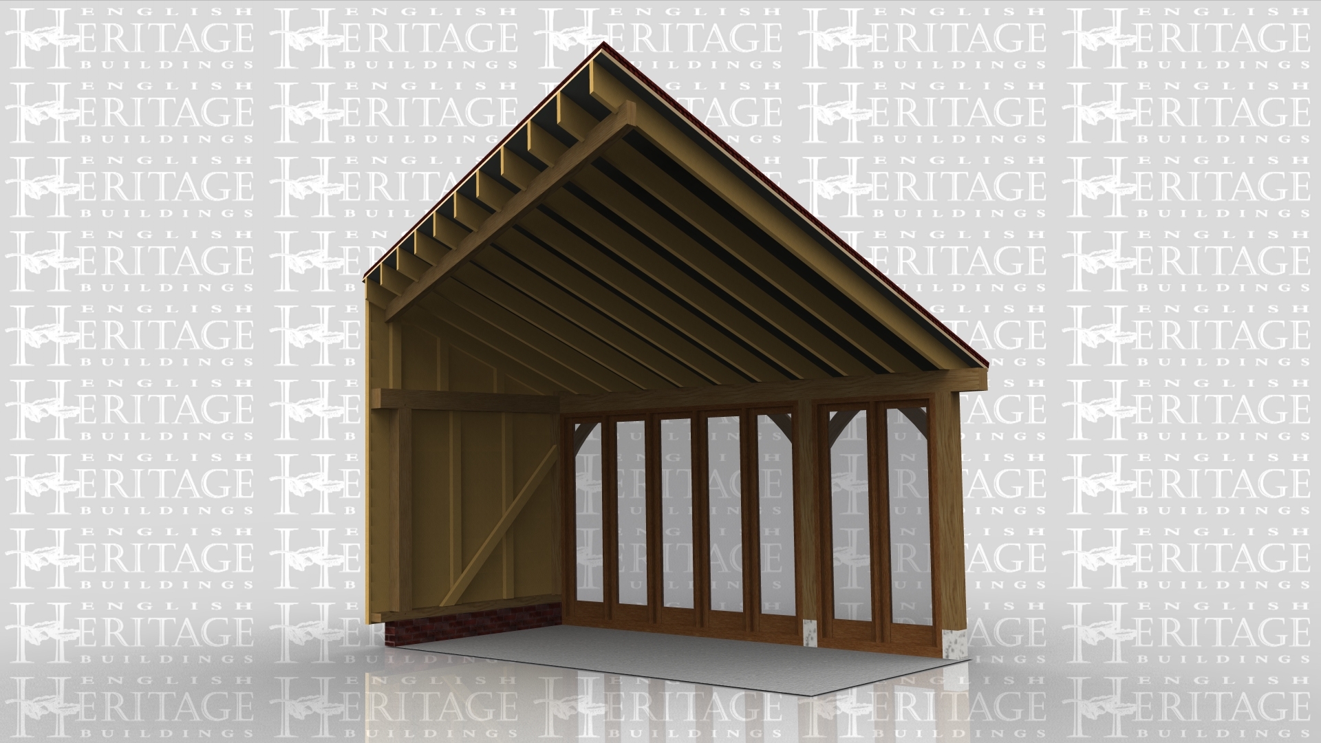 A single bay oak framed extension with the left and rear wall left open to allow it to attach to an existing building and the front wall with full height glazing to allow plenty of natural light in.