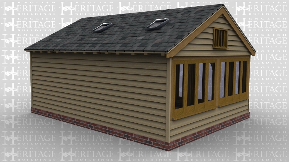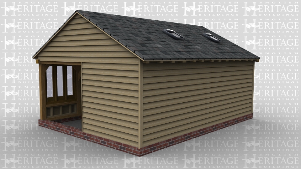 A 3 bay oak framed extension with 8 panes of garden room windows on the left wall as well as a mullion window above to allow plenty of natural light into the room while at the front 2 of the bays are covered with full height glazing to allow even more natural light in while the final bay has a smaller section of garden room windows, the rear of the building is completely weatherboarded while the right is partially open to allow it to attach to an existing building, there are also 2 rooflights at the rear.