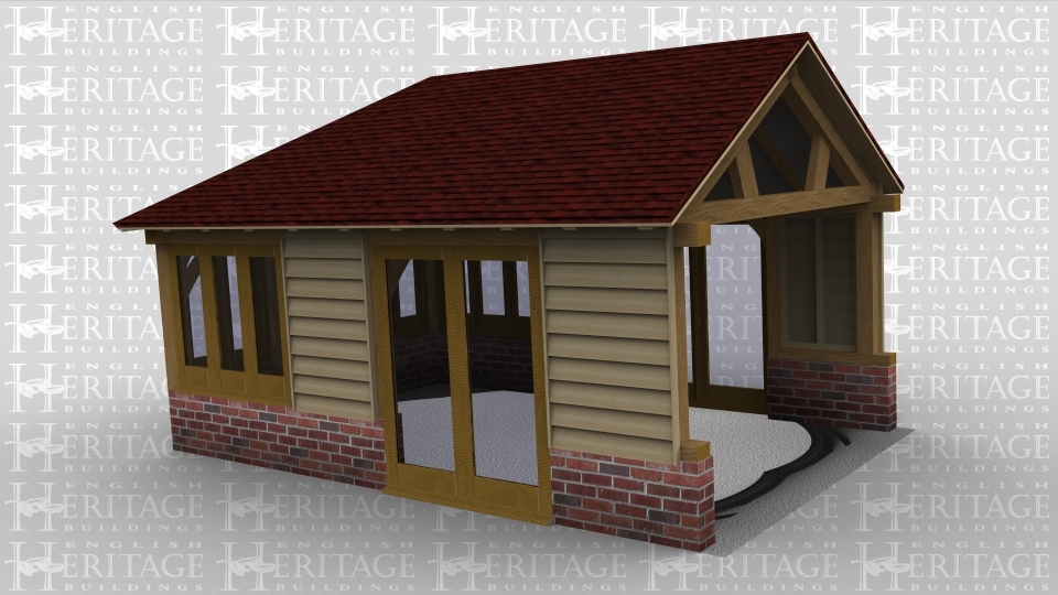 A 2 bay oak framed extension with a combination of full height and standard glazing providing both pedestrian access and plenty of natural light.