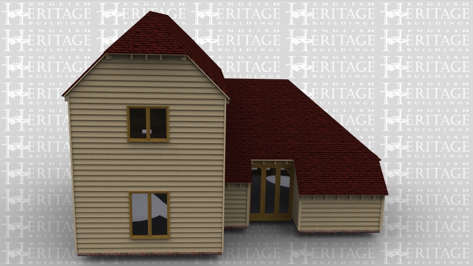A 5 bay oak framed commercial building made up of 2 frames. The first frame is 2 bays in size with a section of full height glazing at the front of one bay while the other bay has an internal aisle at the front, at the rear both bays are made up entirely of full height glazing to allow plenty of natural light in. The second frame is a 3 bay frame with upper floor. On the ground floor the building is attached to the other frame at the front, on the right is a pair of opening garden room doors housed by a small porch as well as there being a 1 light window. The rear of the building has a solid single door again housed by a small porch as well as two 1 light windows to allow the natural light in. The right wall has 2 large windows. The first floor has a large 2 light window on the right wall as well as one on the left wall and at the rear is a 1 light window.