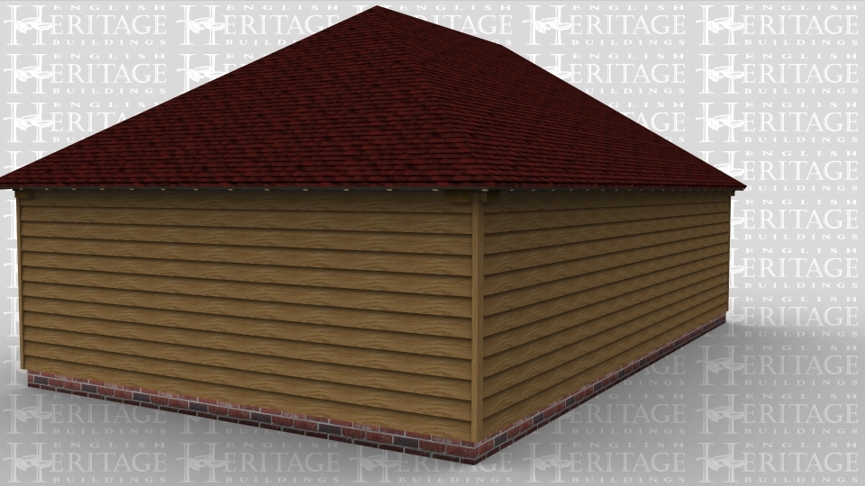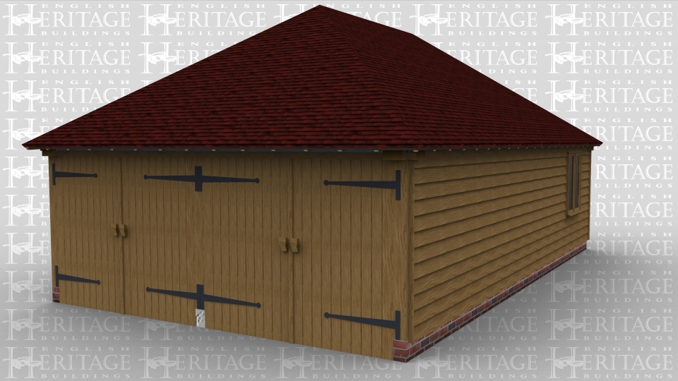 A 3 bay oak framed garage with oak weatherboarding all the way round, there are 2 pairs of oak garage doors on the left while there is a large 2 light window at the front to allow plenty of natural light into the building.